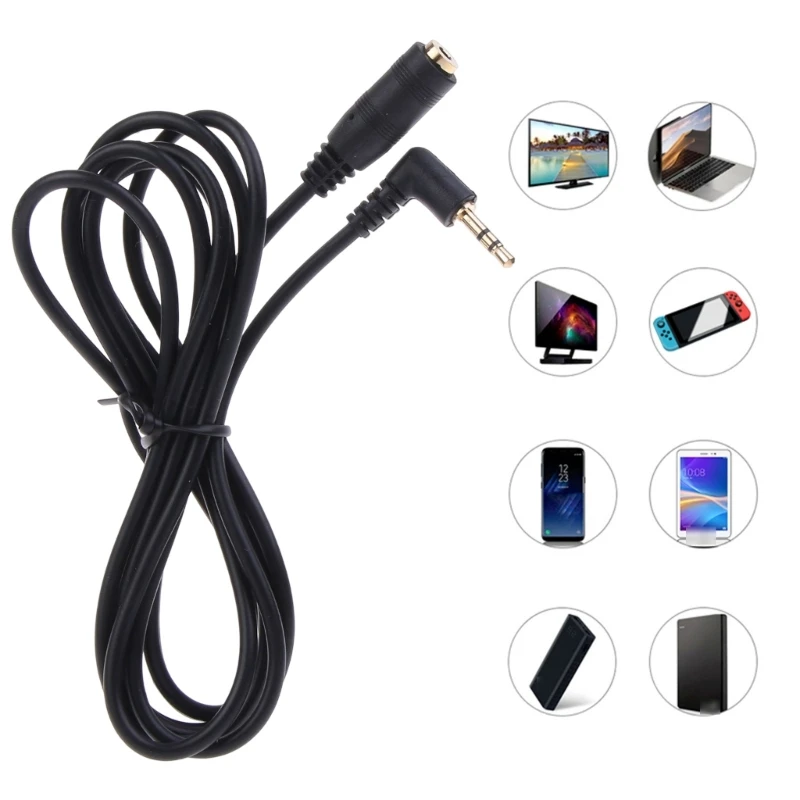 90 Degree 2.5mm Extension Cable Male To Female AUX Cable Adapter for Headphone Speaker Laptop Wire AUX Cord 896C  Read more