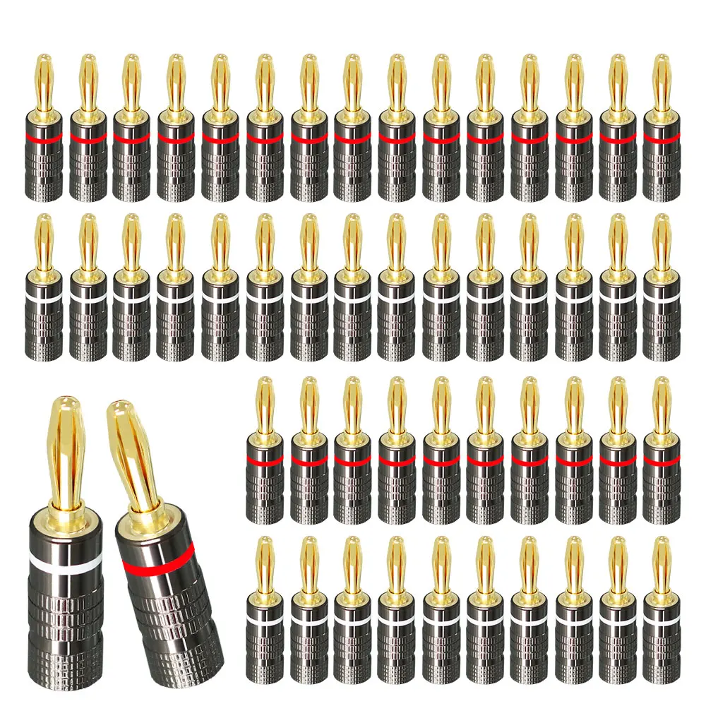 4mm Banana Plugs Male Connector High Quality 24K Gold Plated Hifi Audio Speaker Banana Connectors for Speakers and Amplifiers