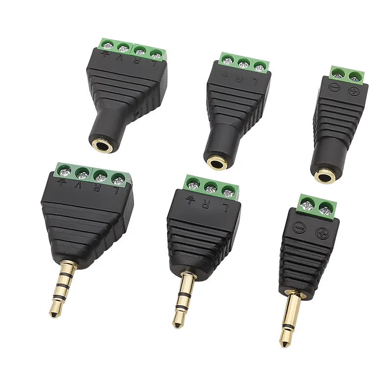 2/3/4 Pole 3.5mm Male Plug / Female Jack To Screw Terminal Block Mono / Stereo Solderless Audio Headphone Wire Connectors