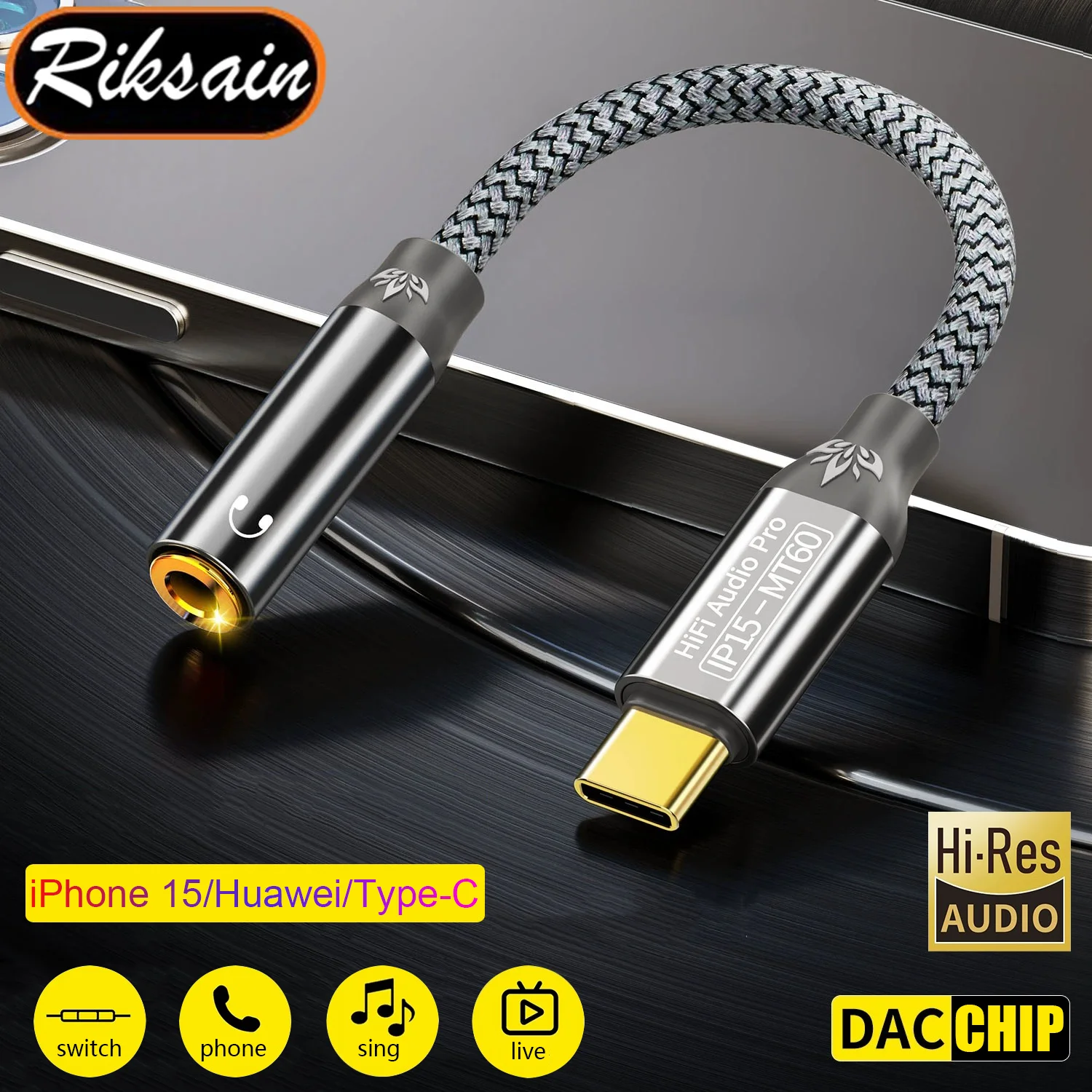 USB Type C To 3.5mm Female Headphone Jack Adapter USB C To Aux Audio Cable for IPhone15 Laptop Mate 60 Huawei Met Samsung Etc