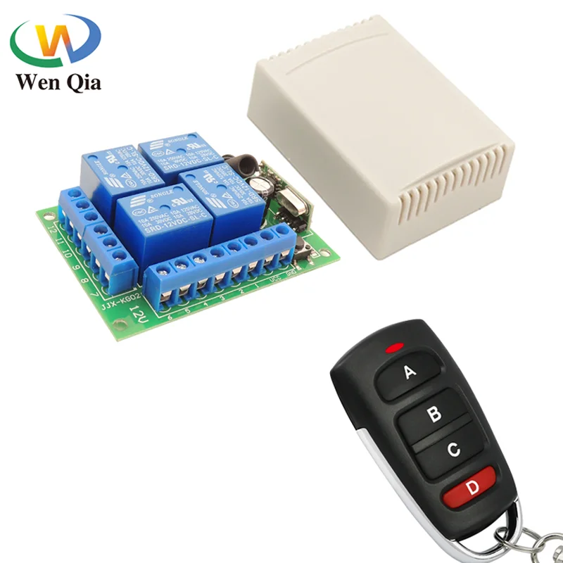WenQia Universal Wireless Remote Control Switch DC 12V 4CH relay Receiver Module With 4 channel RF Remote 433 Mhz Transmitter