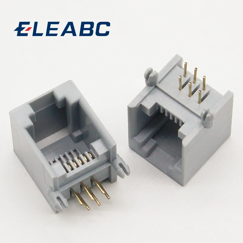 10PCS/Lot RJ12 socket telephone 90 degrees 6pin crystal female 6p6c socket
