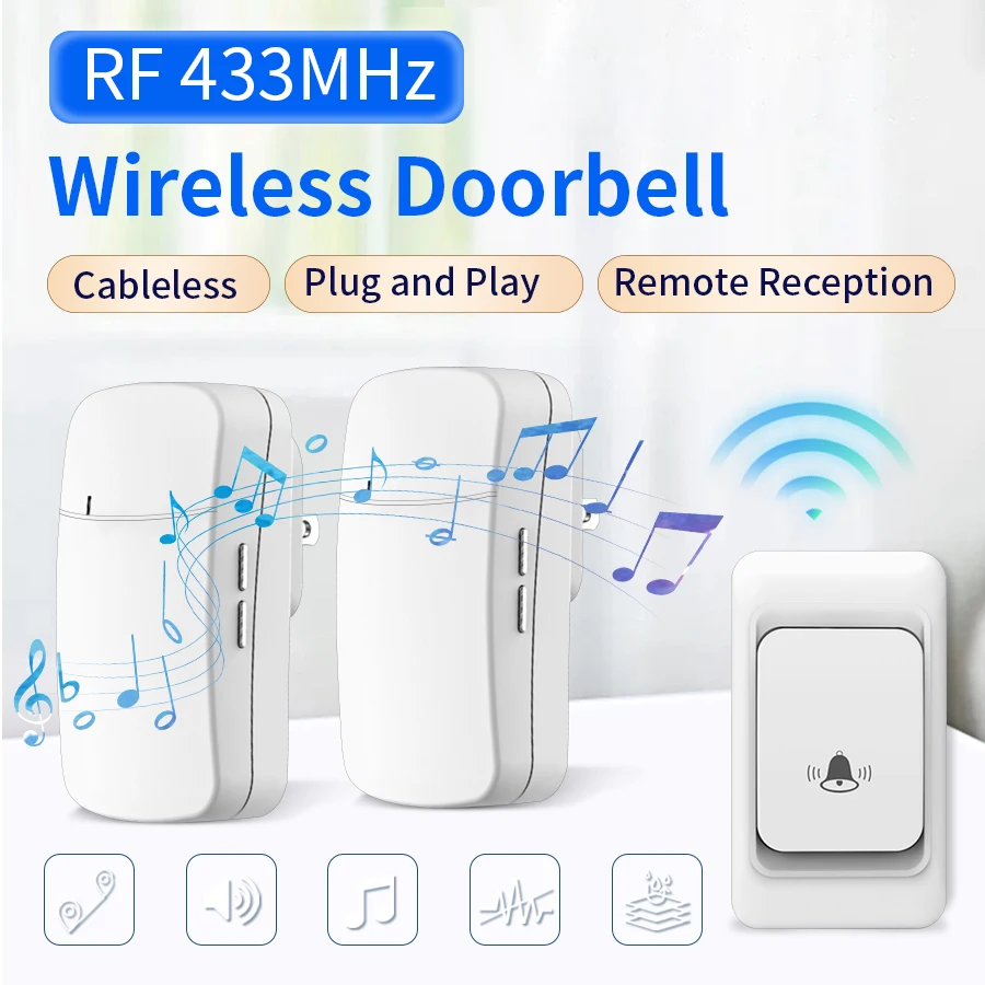 RF 433MHz Wireless Doorbell House Chime Kit 100M Long Distance 38 Ringtones Door Bell EU US Plug Receiver Button Remote Control