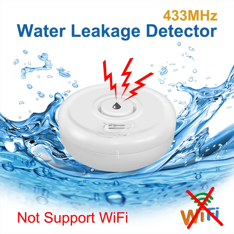 433MHz Wireless Water Leak Alarm Detector Sound Alarm Sensor Flood Detector Detects Water Overflow Works with Alarm System