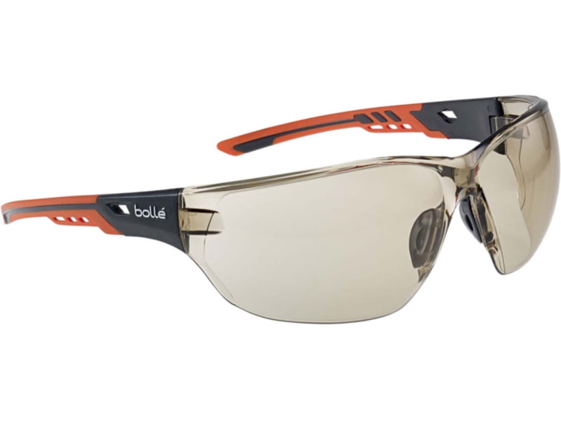 Bolle Ness+ Safety Glasses Black Orange Frame Copper Lens NESSPCSP. Exclusive PLATINUM scratch and fog resistant coating helps you work more efficiently. Available with foam and adjustable strap Ness+ provides protection for different risk levels....  Read more