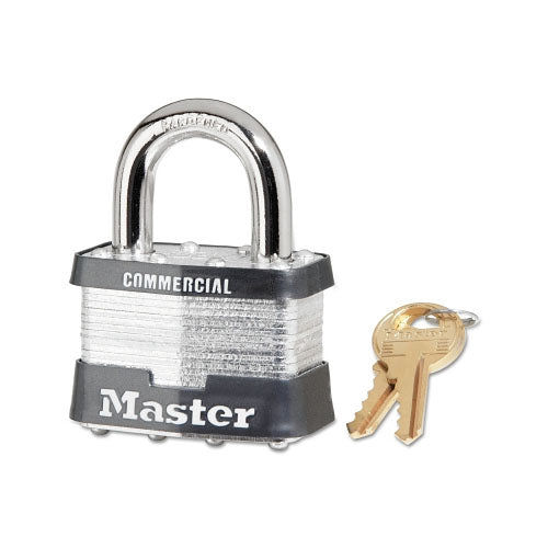 Master Lock No. 1 Laminated Steel Padlock, 5/16 in dia, 3/4 in W x 15/16 in H Shackle, Silver/Gray, Keyed Alike, Keyed 0303 (470-1KA-0303)
