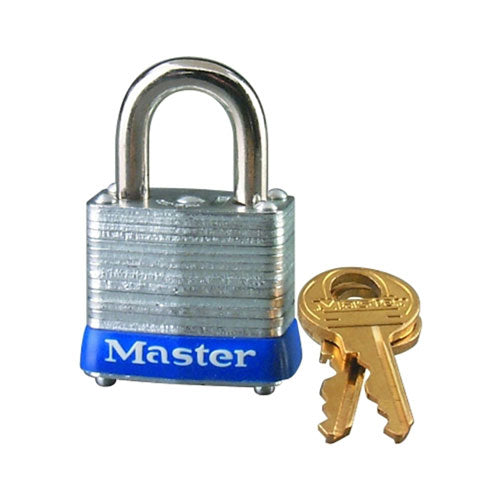 Master Lock No. 7 Laminated Steel Padlock, 3/16 in dia, 1/2 in W x 9/16 in H Shackle, Silver/Blue, Keyed Different (470-7D)
