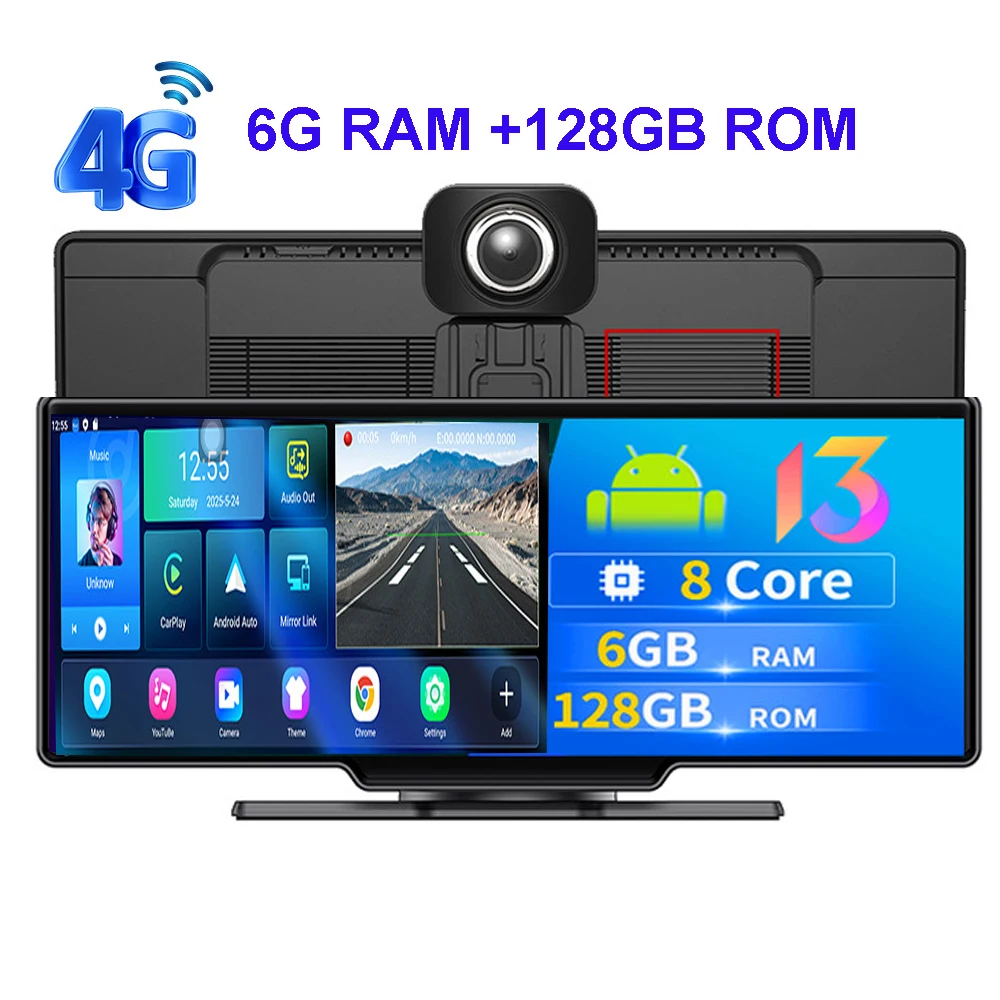 10.26" IPS Car GPS Navigation 6G+128GB ADAS 4G Advanced WIFI Android 13 HD 1080P DVR Video Recorder Registrar Parking Monitoring