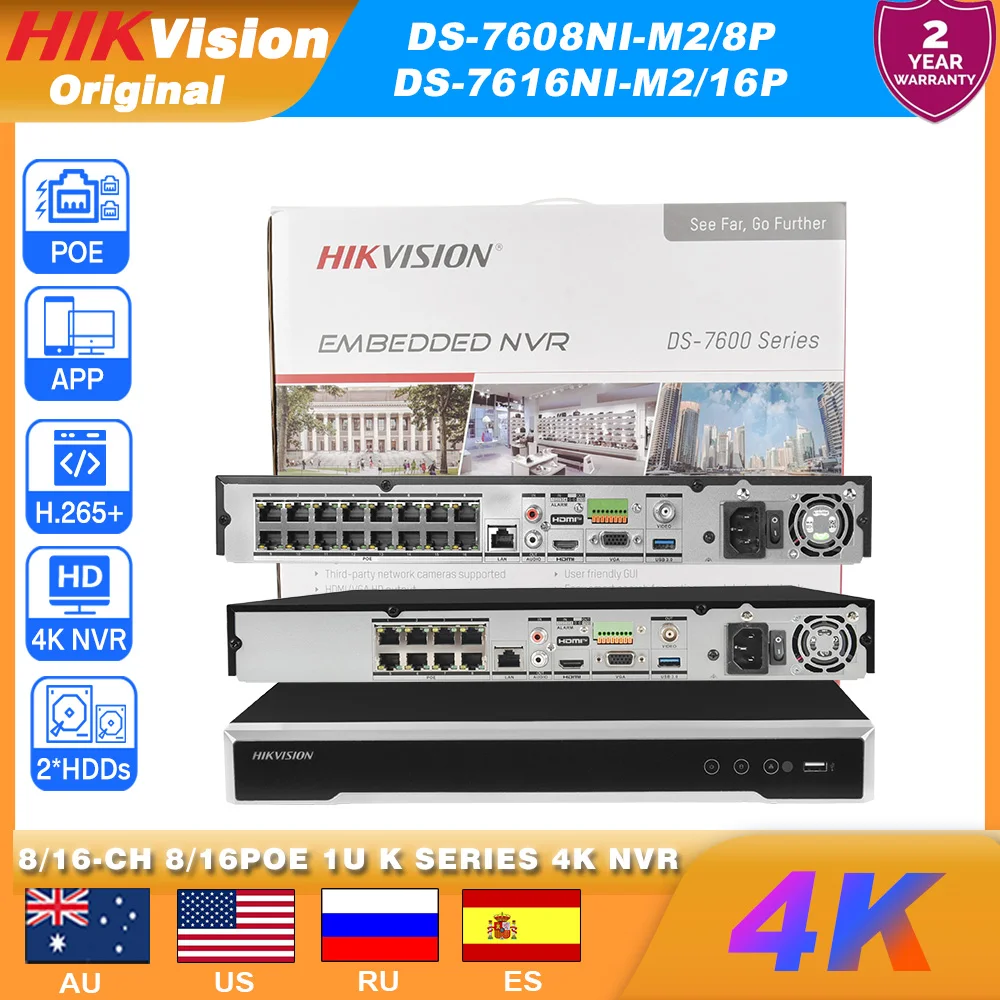 Hikvision 8K 8CH 8POE DS-7608NI-M2/8P&DS-7616NI-M2/16P 16CH 16POE Network Video Recorder 32MP 2SATA H.265 Security Surveillance