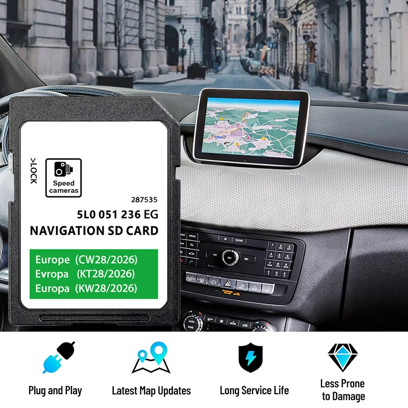 A1 2026 for Skoda Octavia Rapid Yeti Kodiaq Karoq Car MIB2 Navigation SD Card 32GB Europe UK Maps GPS 5L0051236EG
