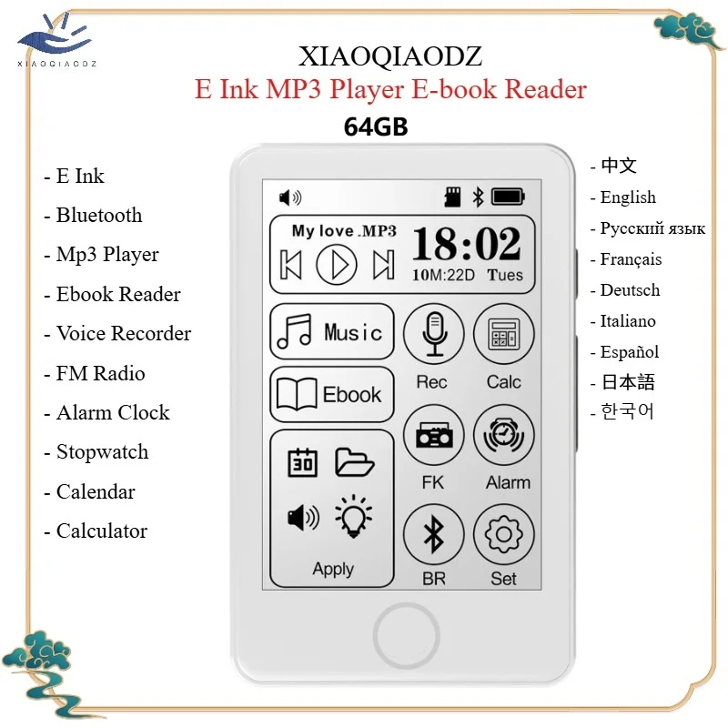 XIAOQIAODZ Electronic Book 64G TF Card Ereader E Ink Reader Ebook Paperwhite MP3 Player Bluetooth Music Voice Recorder VS Kindle