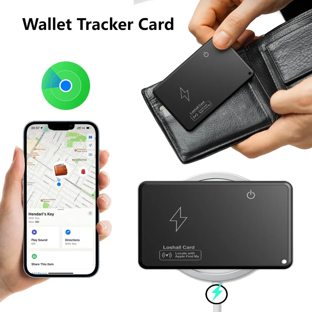 Wireless Charging Wallet Tracker Card Bluetooth-Compatible GPS Tracker Smart Tracking Wallet Card for Apple Find My App Wallet