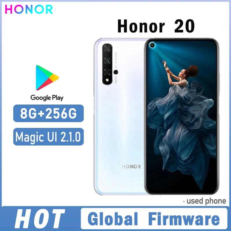 HONOR 20 Smartphone Global firmware Haisi Qilin 980 6.26-inch Magic UI 2.1.0 Android 9.0rear camera 48MP used phone