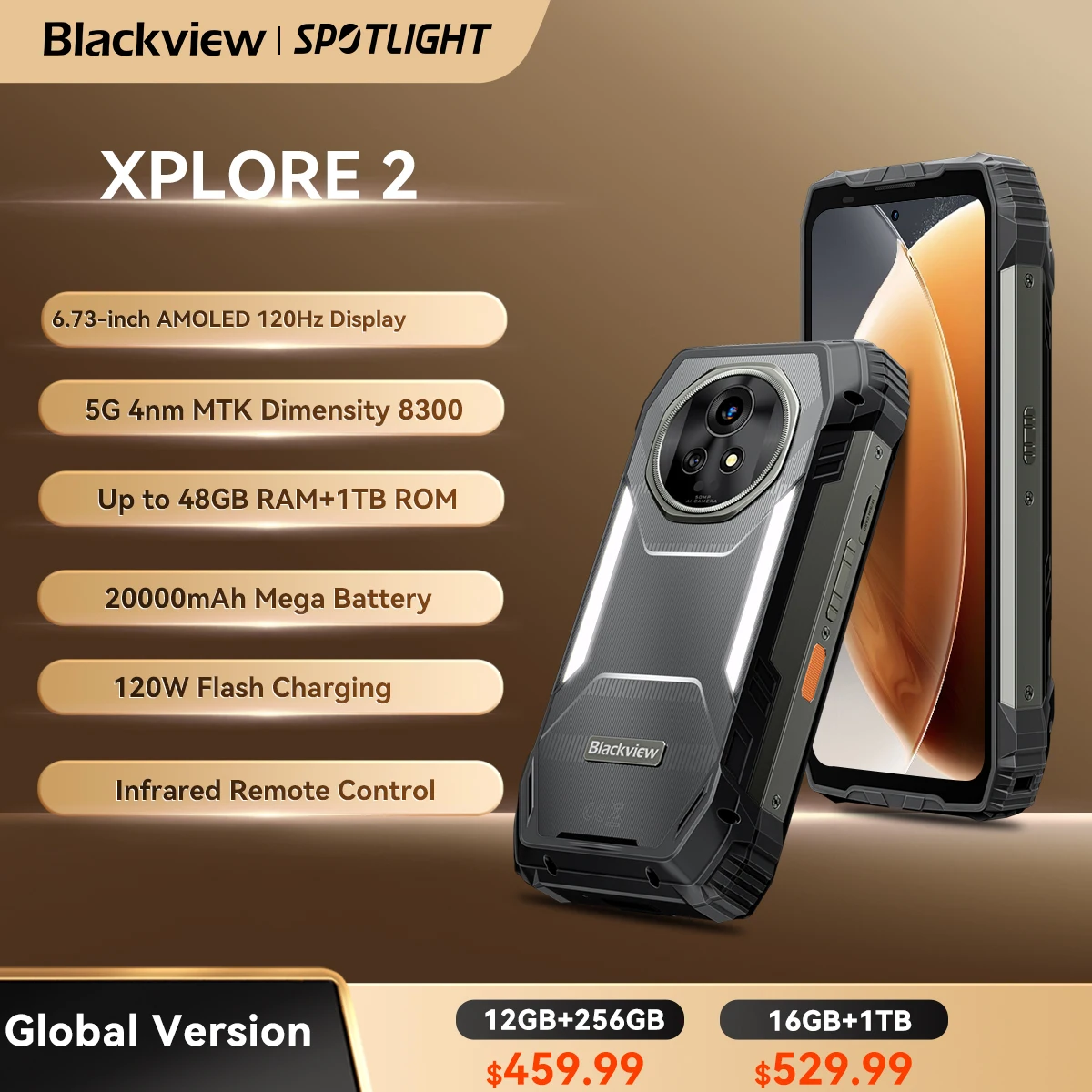 Blackview XPLORE 2 5G Rugged Smartphone, 6.73" AMOLED Display 20000mAh Battery 120W Fast Charge, 50MP Camera, Outdoor Mobile Phone