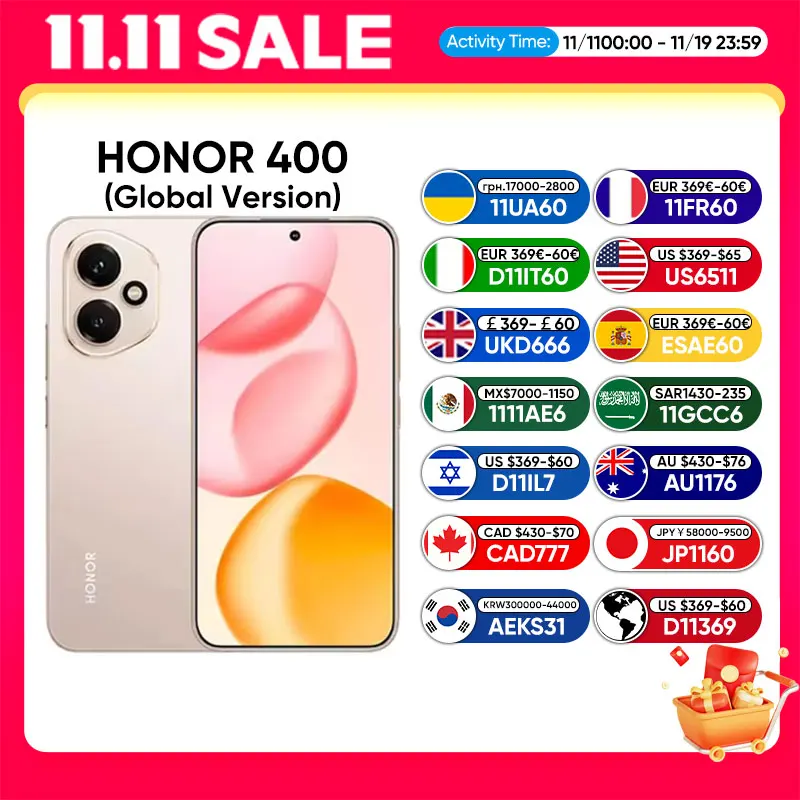 2025 New Global Version HONOR 400 5G Smartphone Snapdragon 7 Gen 3 6.55'' 120Hz AMOLED Display 6000mAh 80W Supercharge eSIM IP66  Read more