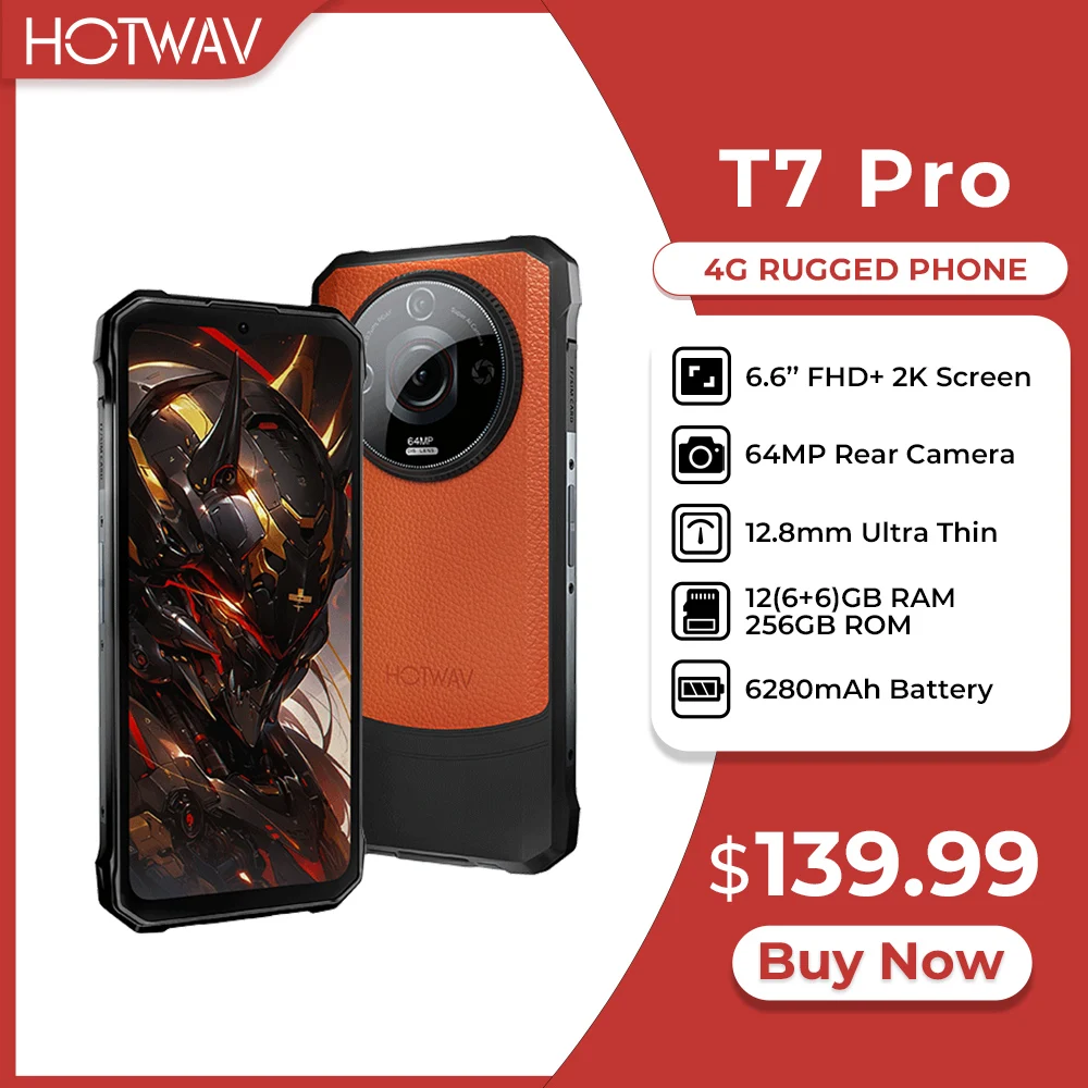 [World Premeire] HOTWAV T7 Pro Rugged Smartphone 64MP 6.6'' FHD+ 2K MobilePhone 6280mAh 12(6+6)GB 256GB Android 13 Cellphone