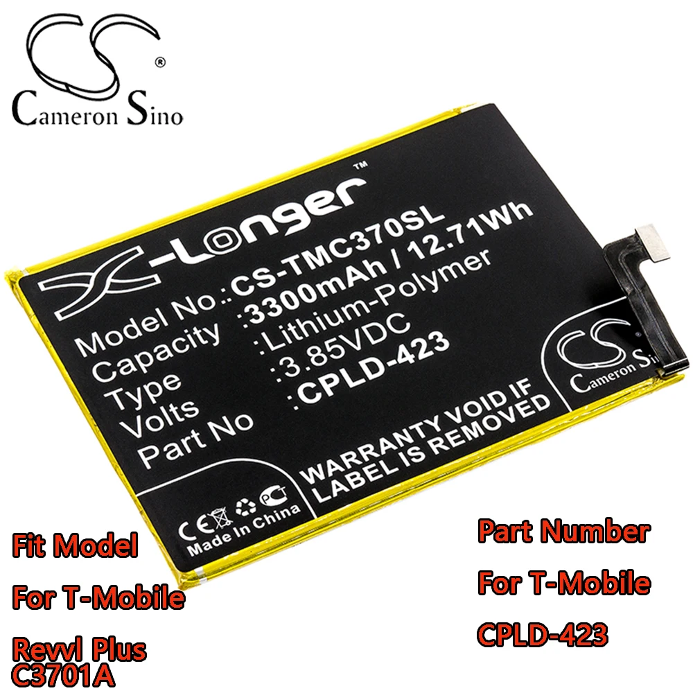 Cameron Sino 3300mAh Mobile SmartPhone Battery For T-Mobile Revvl Plus C3701A Part Number For T-Mobile CPLD-423
