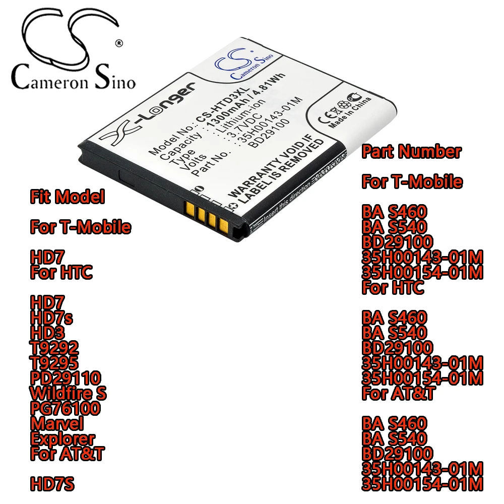 Mobile SmartPhone Battery For T-Mobile HD7 For HTC HD7 7s 3 T9292 T9295 PD29110 Wildfire S PG76100 Marvel Explorer For AT&T HD7S
