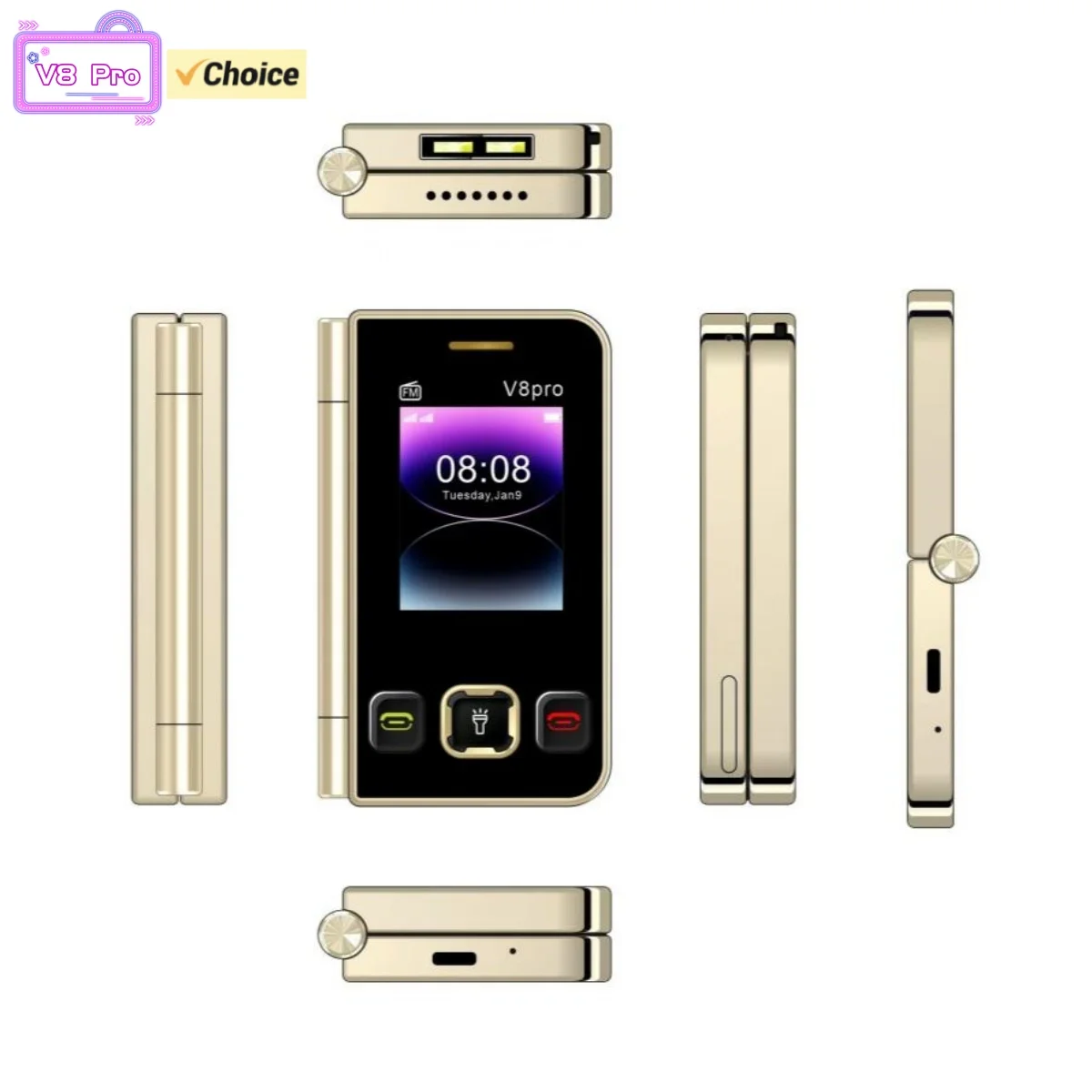 V8 Pro 2G New Folding Phone MTK 1.77inches Double Screen Dual SIM Dual Standby 3600mAh Mp3 Mp4 Type-C Torch Mini Cellphone