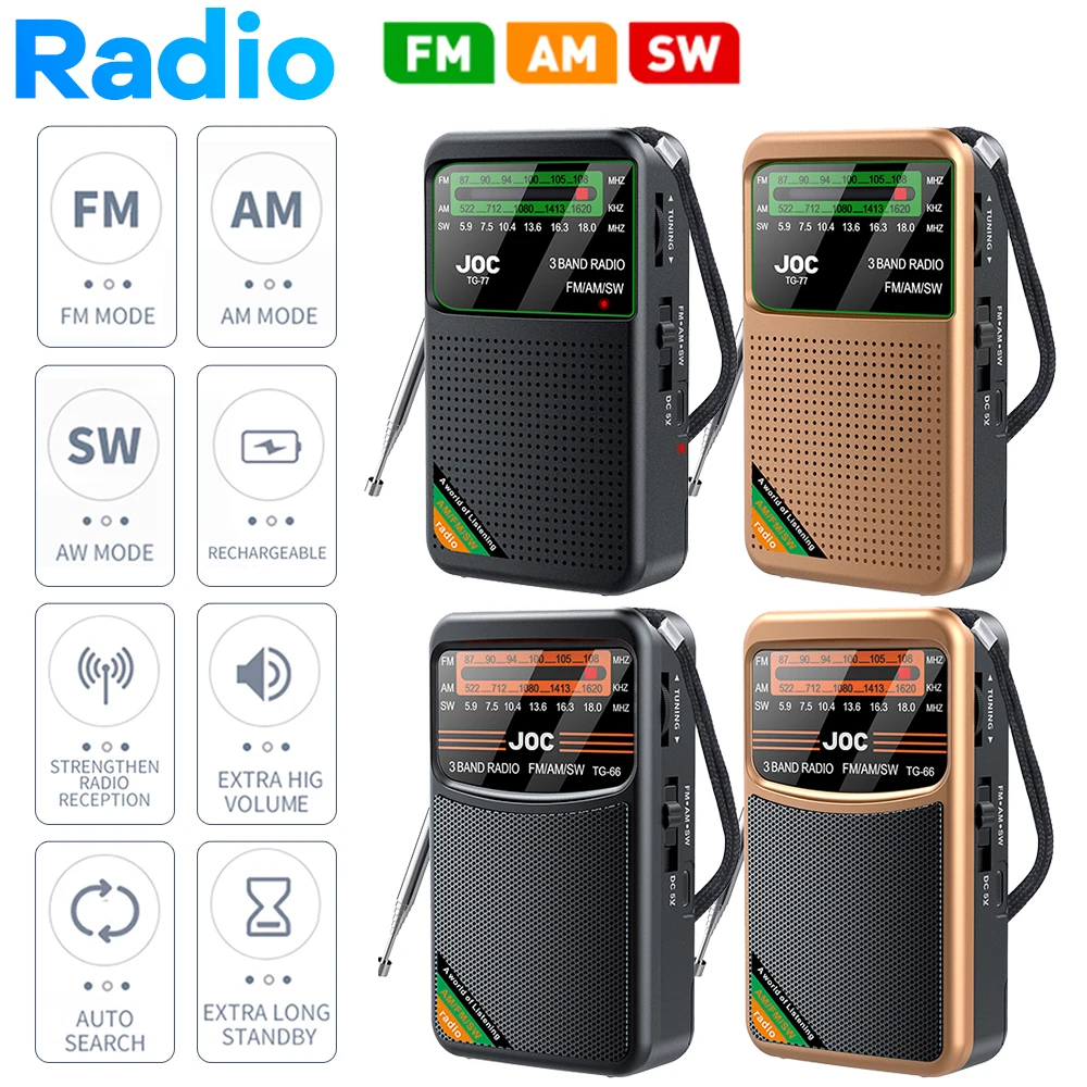 Portable Radio AM FM SW Pocket Radios with Rechargeable Battery Built in Speaker with HD Display Screen Mini FM Receiver Radios