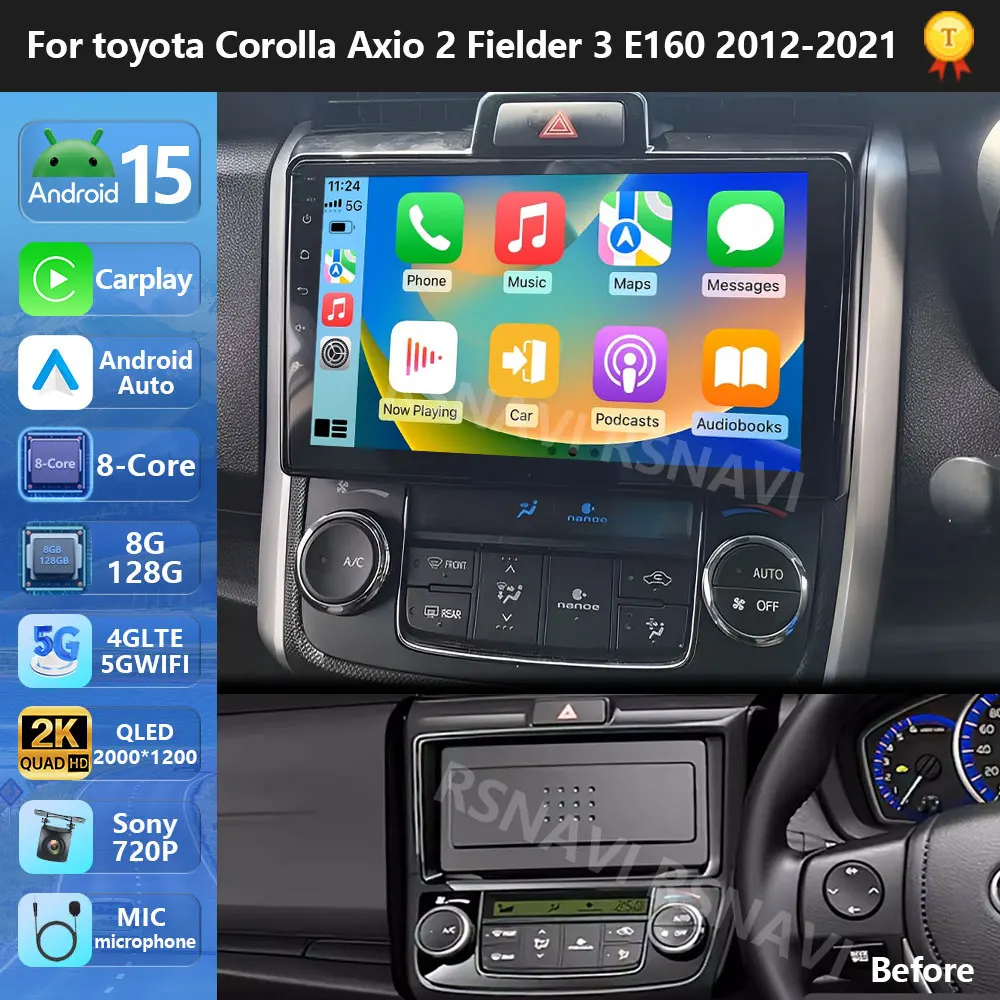 Plug and Play Android 15 For Toyota Corolla Axio 2 Fielder 3 E160 2012 - 2021 Stereo Car Radio Multimedia Video GPS 4G CarPlay
