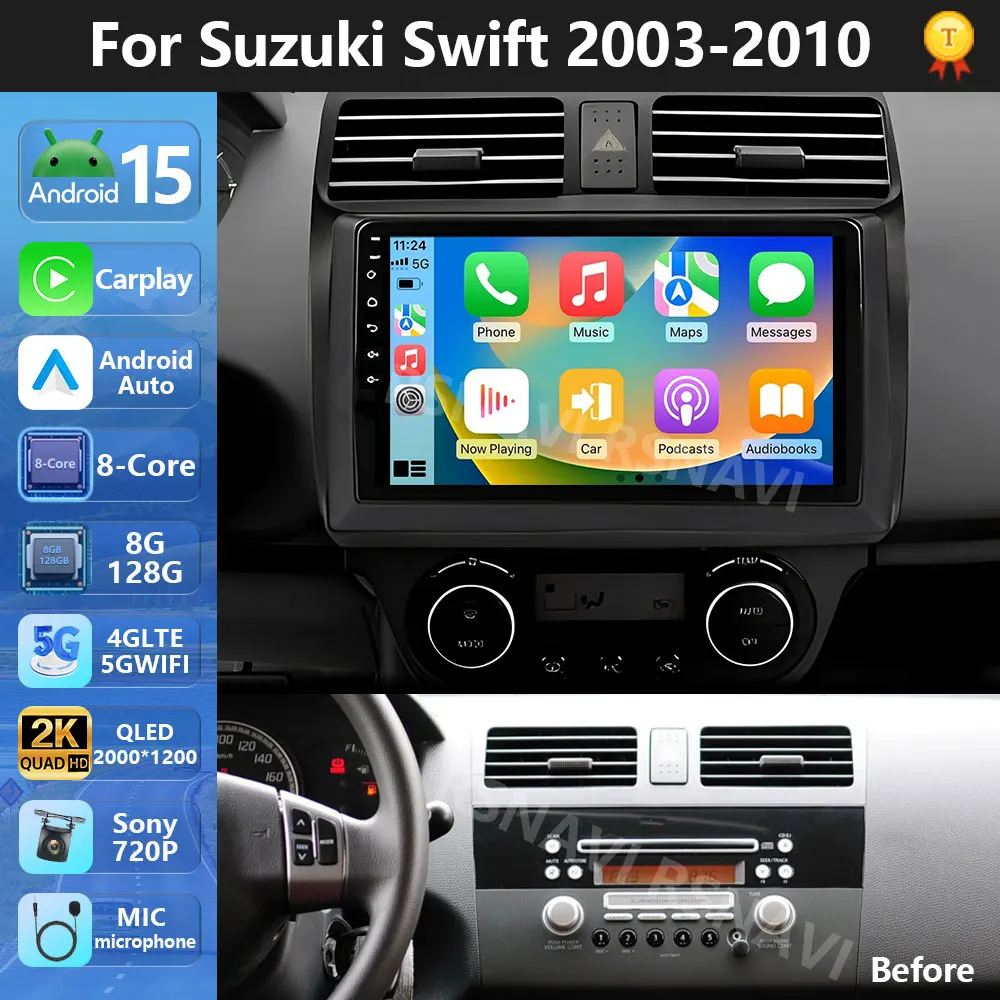 Plug and Play Android 15 Multimedia Player For Suzuki Swift 2003 - 2010 Carplay Auto Radio Radio 4G Navigation GPS RDS DSP 48EQ