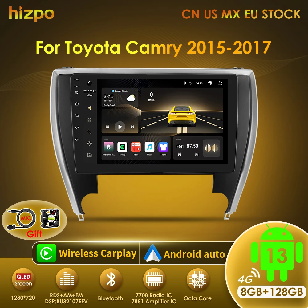 Hizpo Car Radio Player Head Unit Plug And Play For Toyota Camry 2015-2017 North America Version GPS Navigation Android Auto DSP