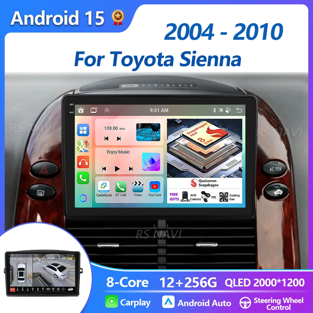 Plug and Play Android 15 Carplay Auto Qualcomm 2K QLED Screen Car Radio Player For Toyota Sienna 2004 - 2010 Multimedia Stereo