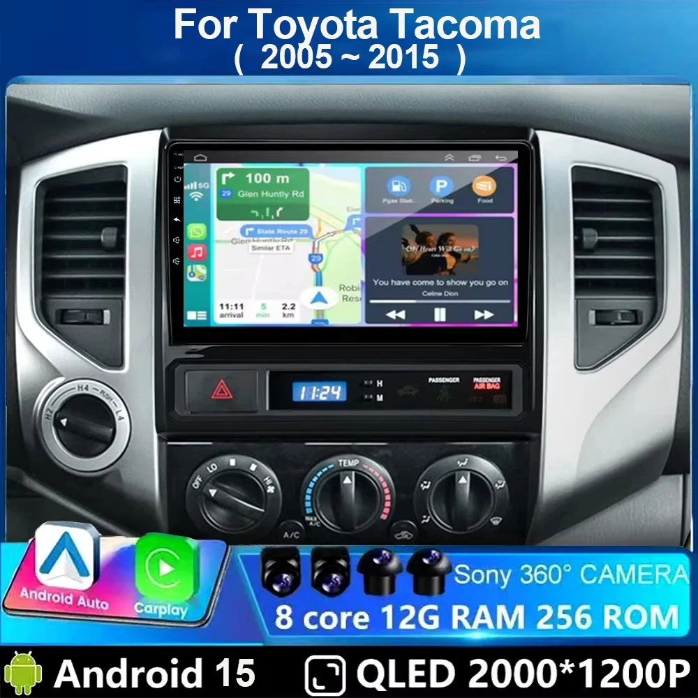 9” WIFI Android 15 Car Radio For Toyota Tacoma 2 Hilux 2005-2015 Multimedia Player Wireless Carplay Android Auto Stereo GPS DSP