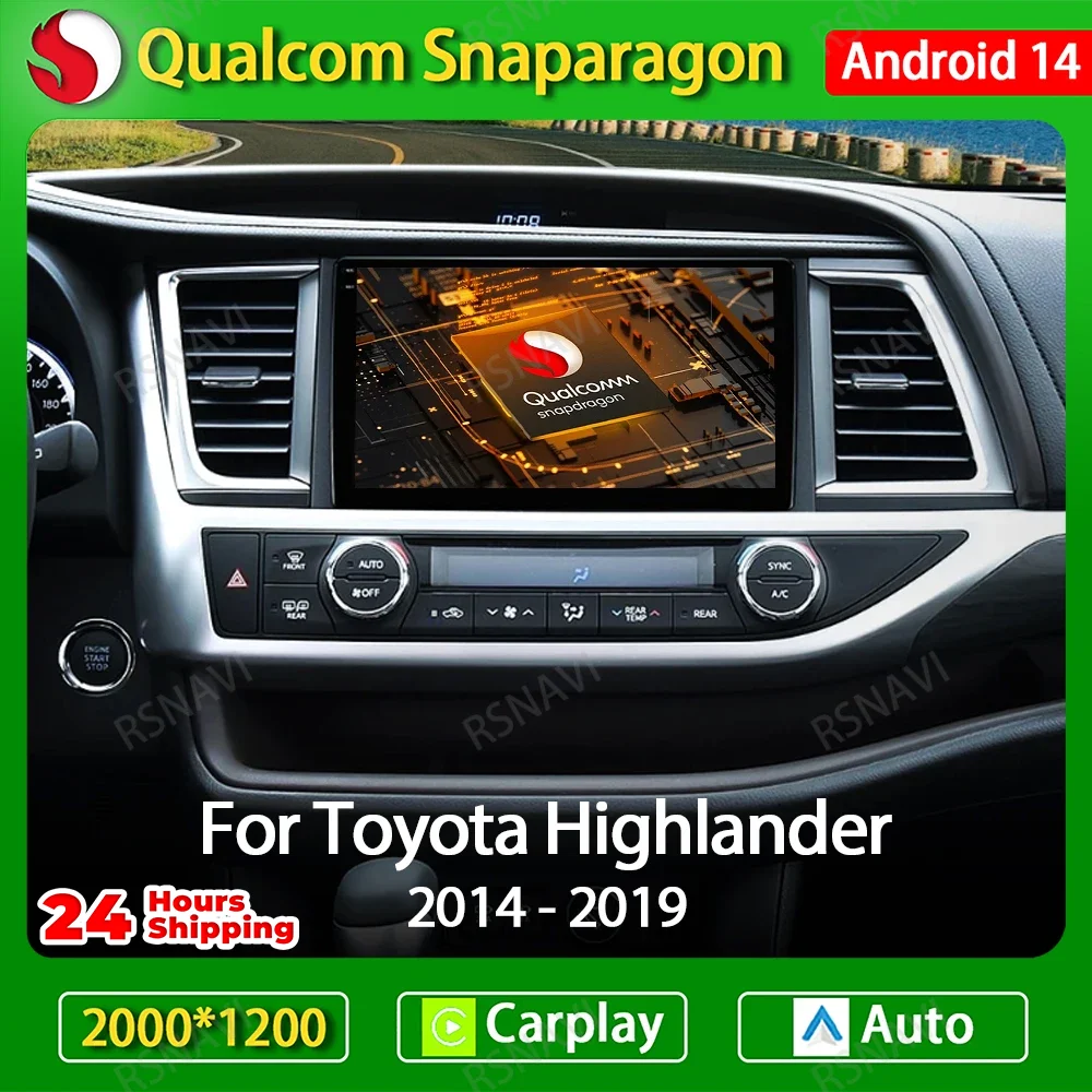 Android 14 Car Radio For Toyota Highlander 2014 2015 2016 2017 2018 2019 Carplay Auto Multimedia Video Player 4G WIFI GPS NAVI