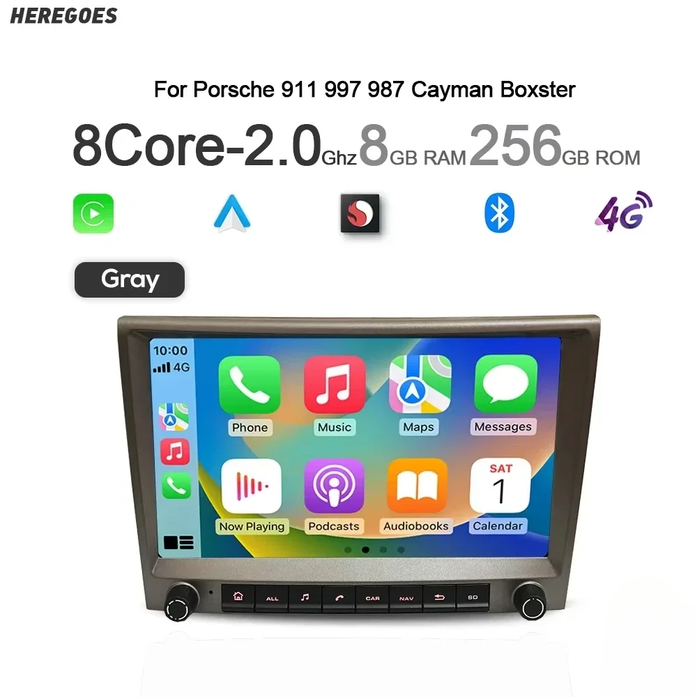 Grey 720P Auto Android 14 For Porsche Cayman 911 987 Boxster 997 CarPlay Car Radio GPS Multimedia Navigation 4GB Bluetooth Wifi