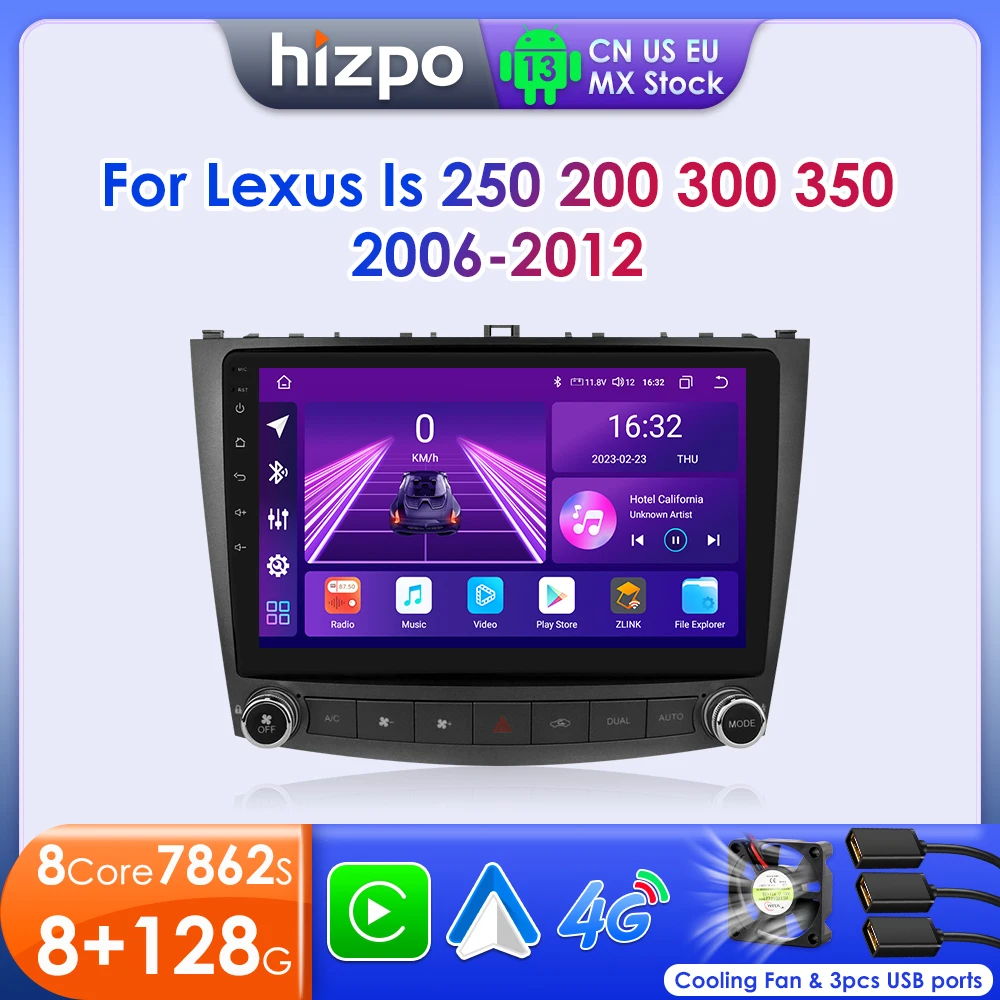 Hizpo Android 14 For Lexus IS250 200 300 350 2006-2012 Car Radio Bluetooth Touchscreen Multimedia Player Autoradio WIFI Carplay