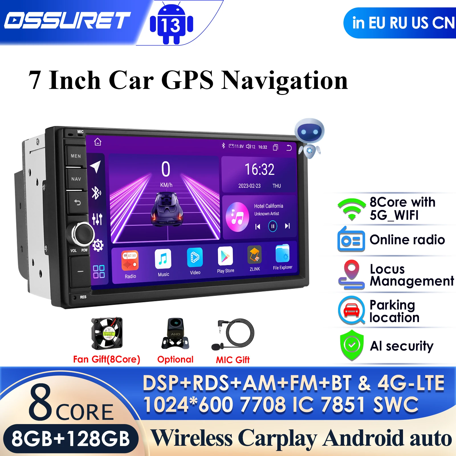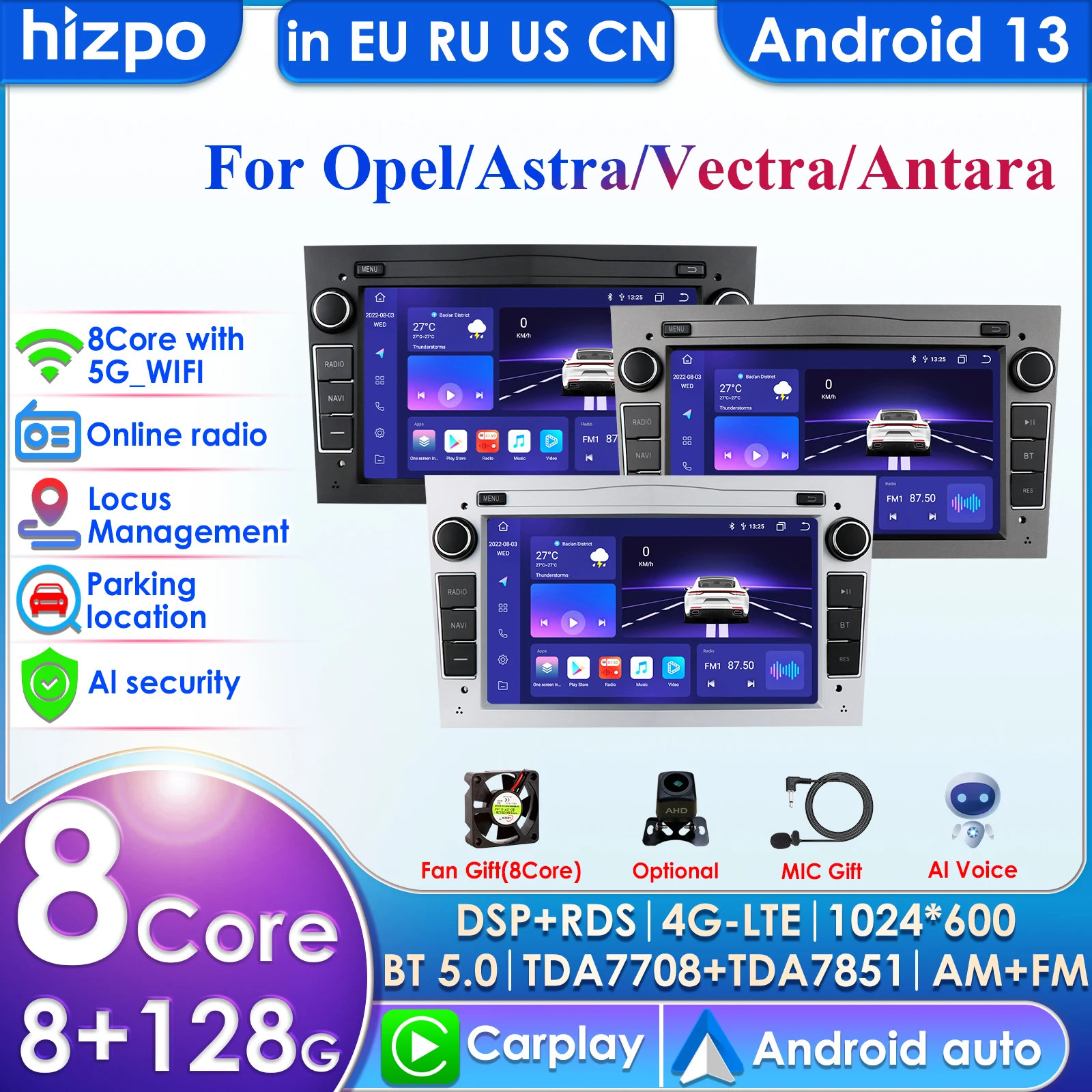 8GRAM 128GB Android 2DIN Car Radio GPS WiFi Player for Opel Vauxhall Astra H G J Vectra Antara Zafira Corsa Vivaro Meriva No DVD