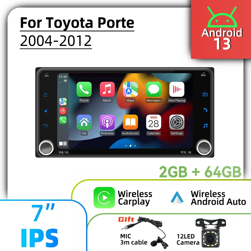 7" Screen Stereo Car Multimedia For Toyota Porte 2004-2012 Wireless Carplay Autoradio 2 Din Android Radio Head Unit GPS BT WIFI