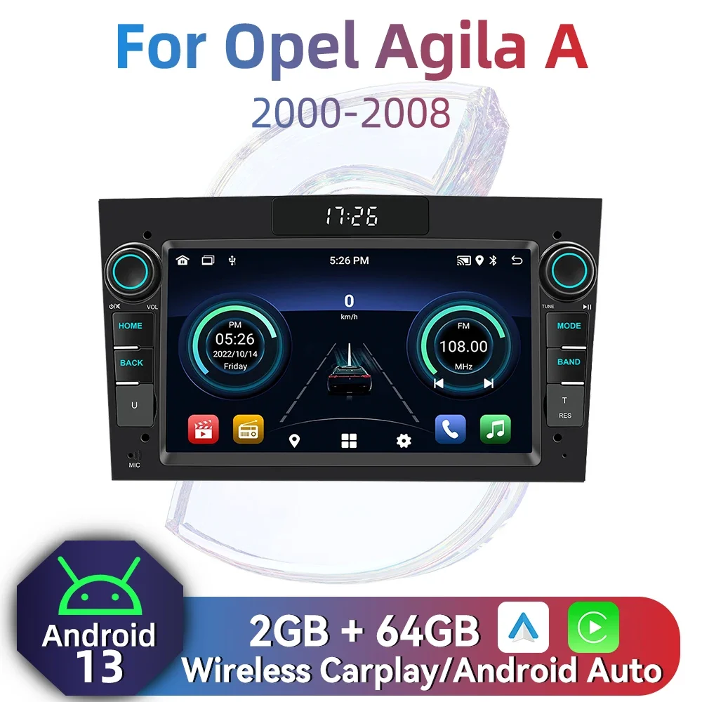 2 Din Android Radio Car Multimedia for Opel Agila A 2000-2008 7" Screen GPS BT WIFI Wireless Carplay Autoradio Stereo Head Unit