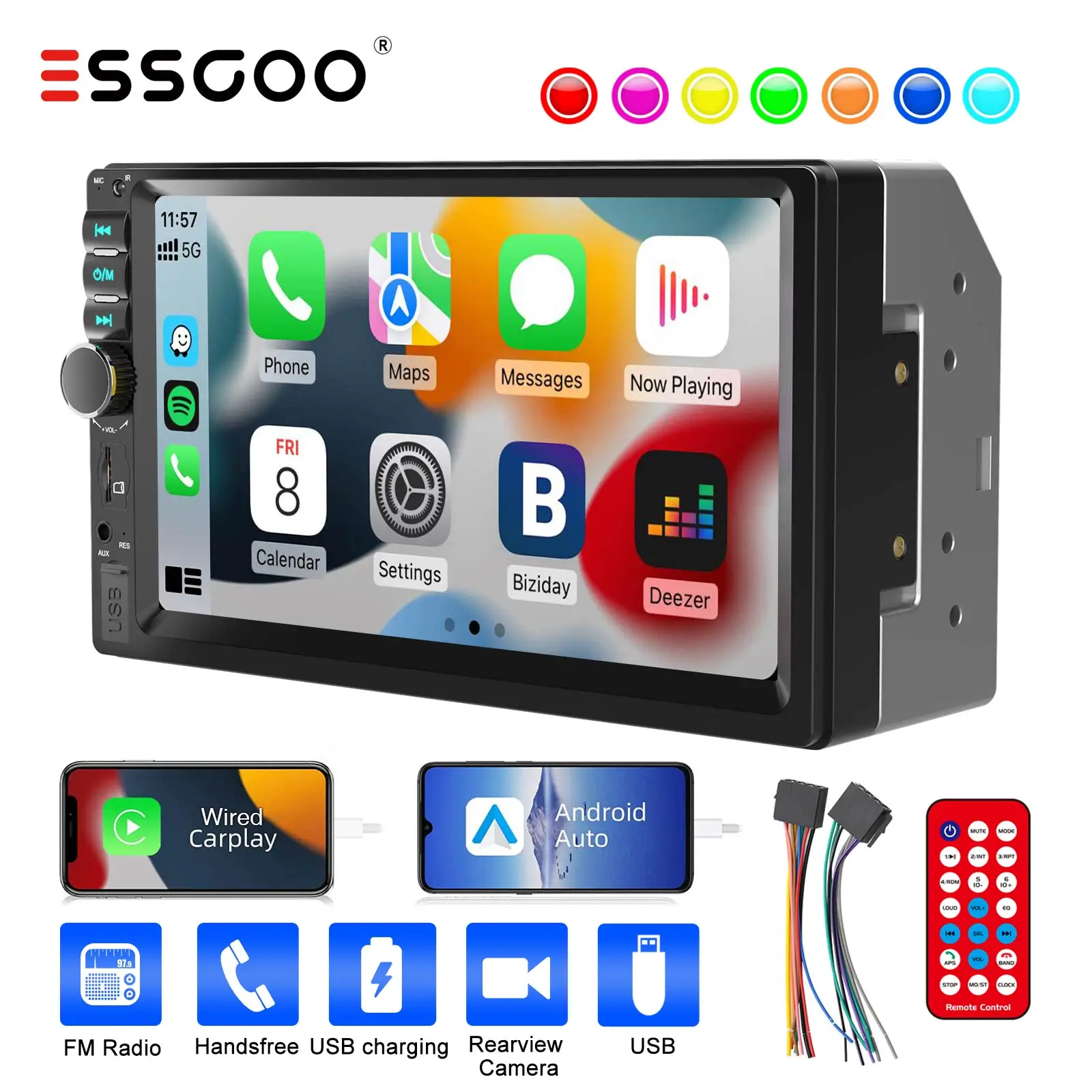 ESSGOO 7 Inch Carplay/Android Auto Double 2 DIN Car Stereo Stereo Head Unit Radio AUX FM USB Multimedia MP5 Player