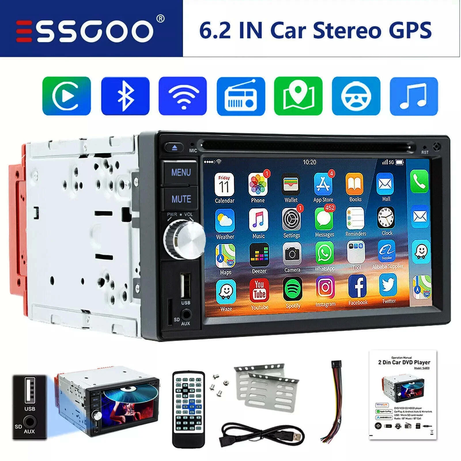 ESSGOO Universal Double 2 Din 6.2" Car Stereo Radio CD DVD Multimedia Video MP5 Player Wireless Carplay & Android Auto USB BT