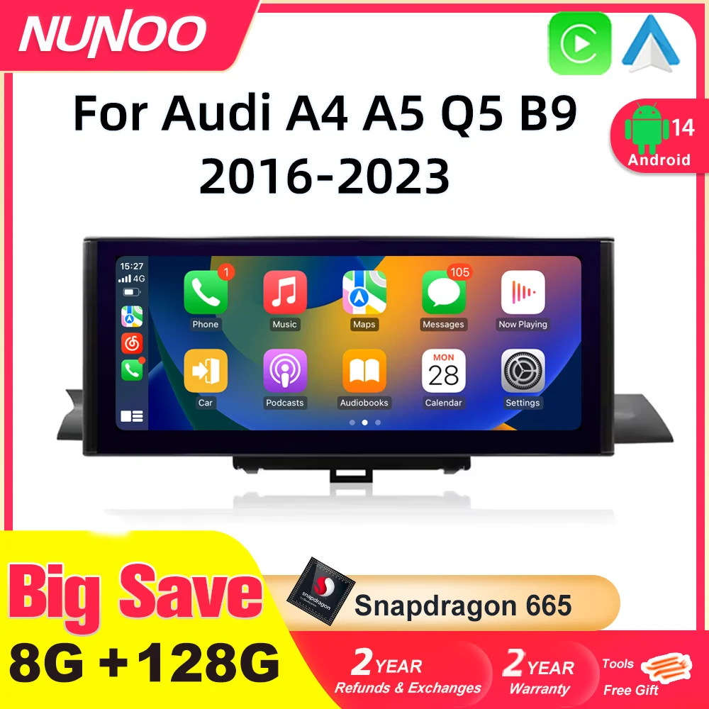 12.3 Android 14 Wireless Carplay For Audi A4 A5 Q5 B9 2017 2016-2023 IPS Touch Screen WIFI Multimedia Stereo GPS Navi Receiver