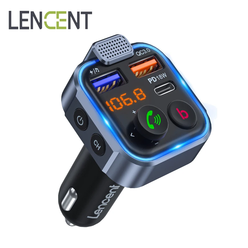 LENCENT FM Transmitter Wireless Bluetooth 5.0 Handsfree Car Kit Audio MP3 Player With Type-C PD 20W+ QC3.0 Fast USB FM Modulator