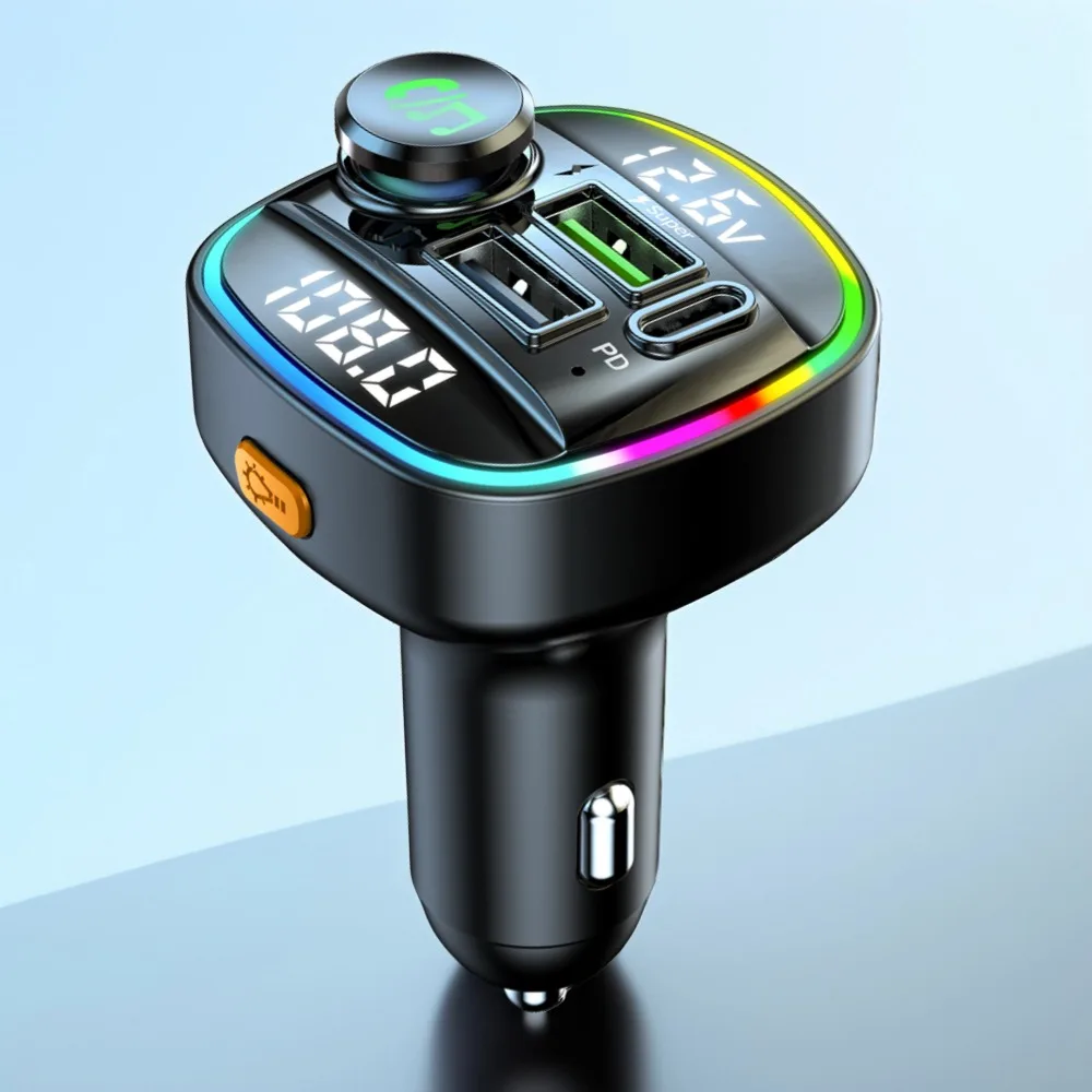 Car Charger FM Transmitter Bluetooth5.0 Hands Free FastCharging True 3.1A Dual USB Port PD MP3 Music TF Card U disk AUX Player