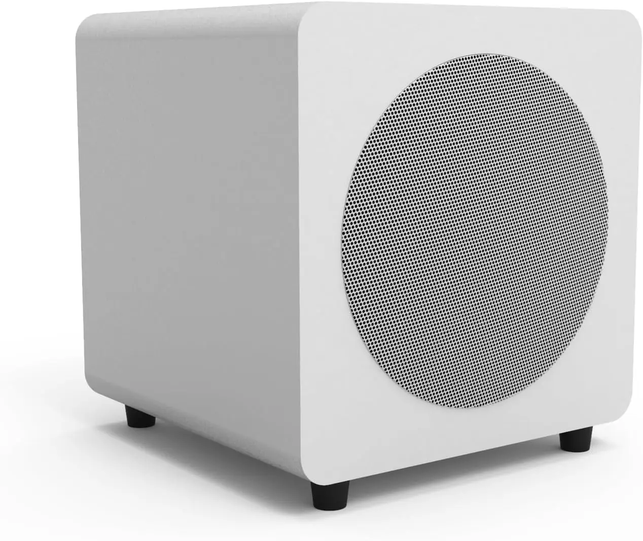 SUB8VMWW Sealed Powered Subwoofer with Grille| 300W Peak Power | 8" Woofer | Matte White