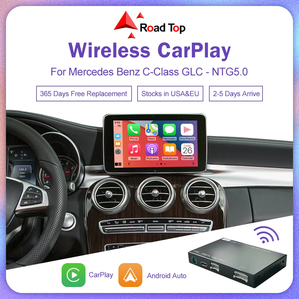 Road Top Wireless Carplay Decoder for Mercedes Benz NTG5.0 C GLC CLA GLA Class W205 2015-2018 Support Android Auto Mirrorlink  Read more