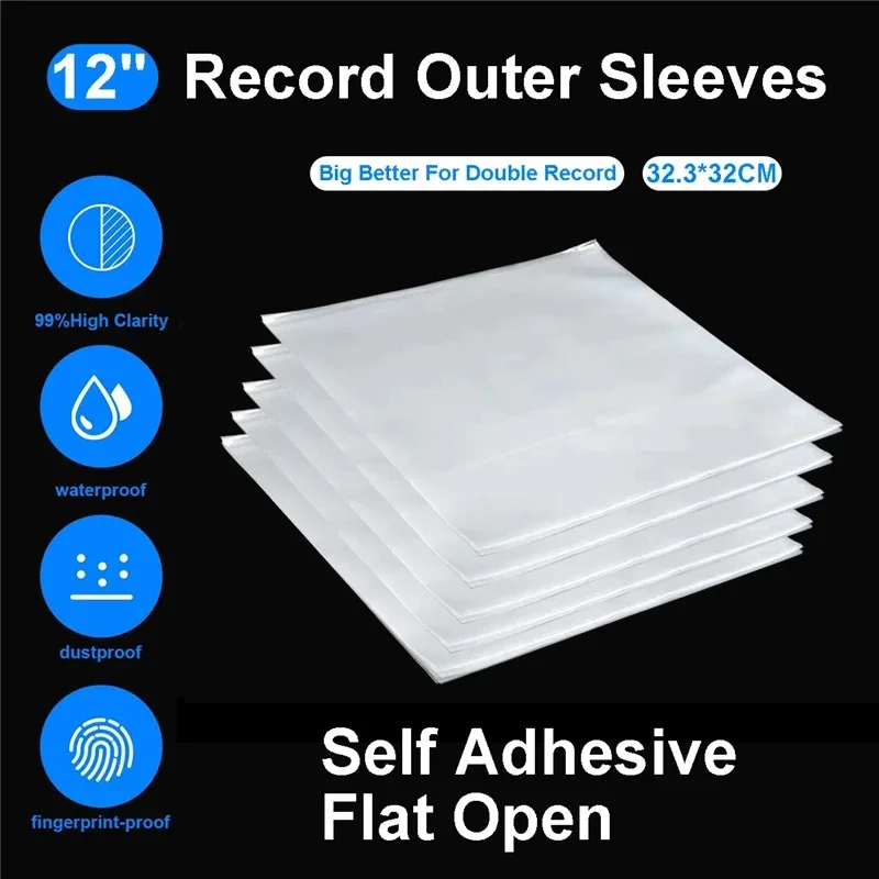 50PCS OPP Gel Recording Protective Sleeve for Turntable Player LP Vinyl Record Self Adhesive Records Bag 12" 32.3cm*32cm