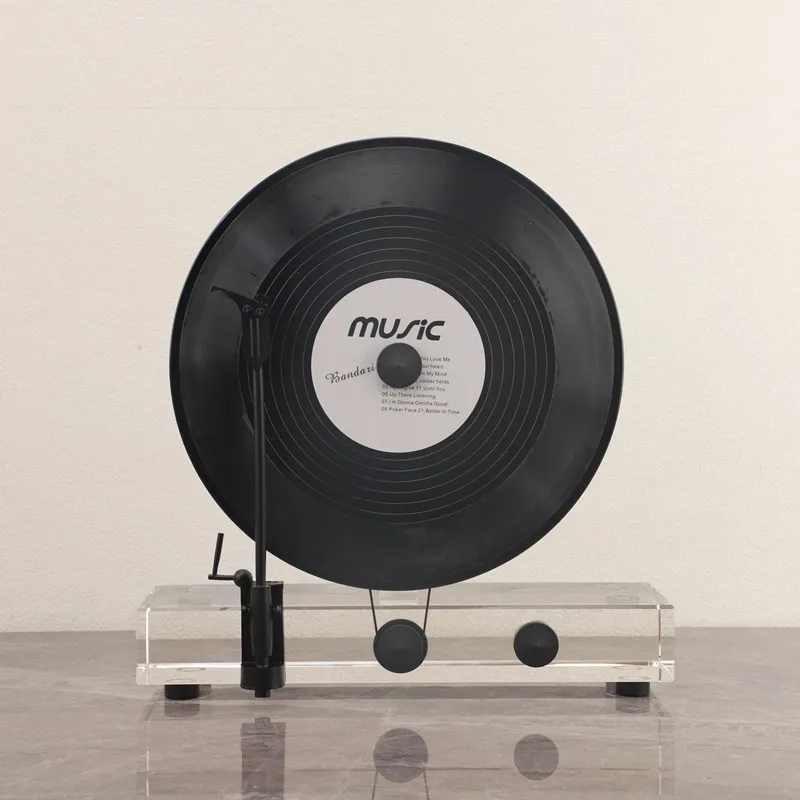 Simulated Vertical Vinyl Record Player, Metal Crystal Recording Machine, Model Decoration Ornament, Home Decoration Accessories
