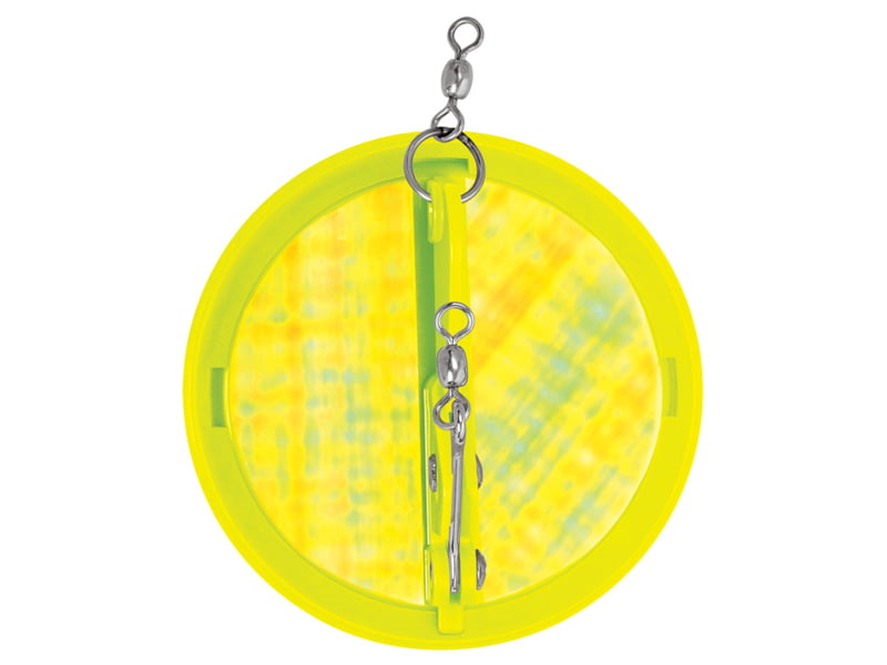 Luhr Jensen 4-1/8in Dipsy Diver - Chartreuse/Silver Bottom Moon Jelly 5560-001-2509. A shift left or right as indicated on the base plate will cause the diver to track to port or starboard allowing for large spreads of lures to be fished from a...  Read more