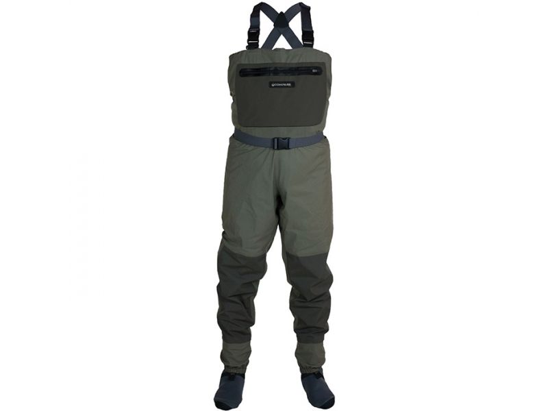 Compass 360 Deadfall Chest Wader Stone Sm 2111125-SM. Constructed with tough and durable 4 layer polyester upper with 4 layer double reinforced knee and shin. The Deadfall a double chest pocket design and classic performance at a terrific value....  Read more