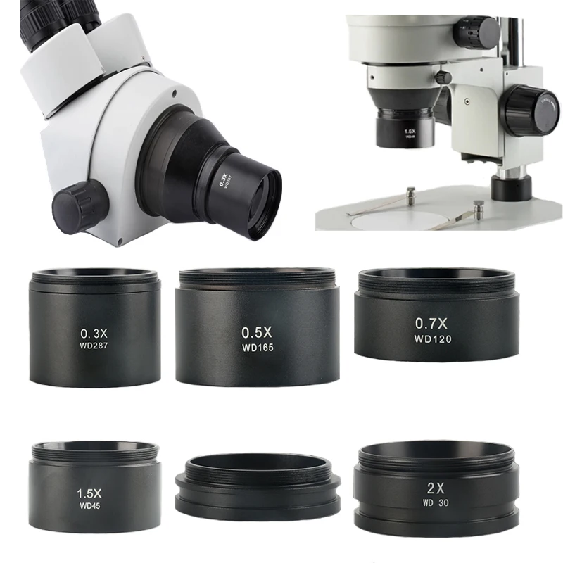0.5X 1X 0.7X 2X 0.75X 0.3X 1.5X 48MM Auxiliary Barlow Objective Lens For Soldering Stereo Microscope