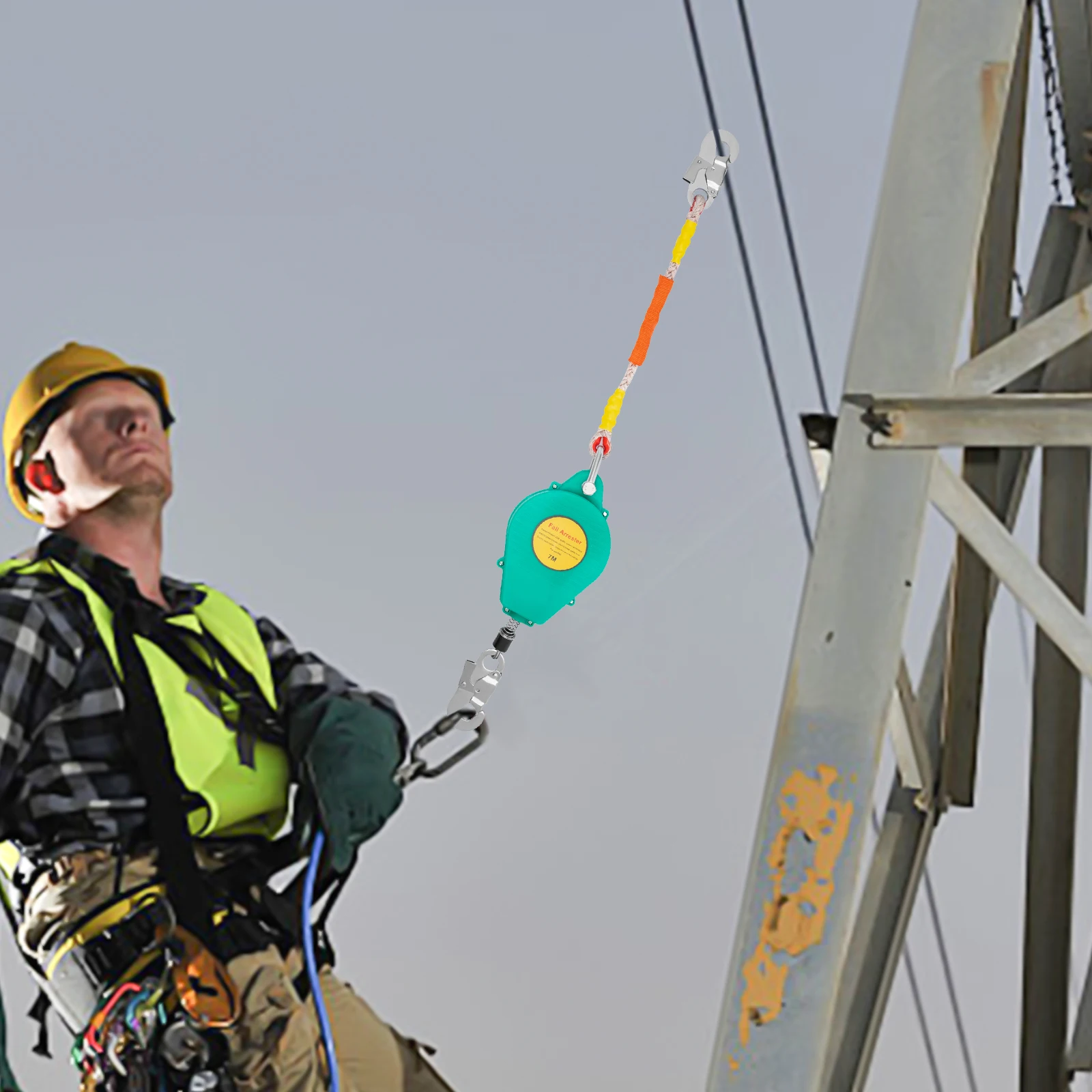 23ft Self Retracting Lifeline Fall Protection with Dual Swivels Alloy Steel Hooks, 330lbs Capacity Safety Harness Equipment