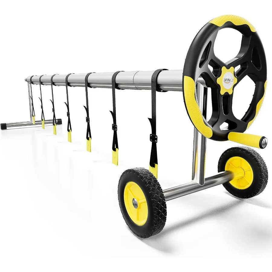 18 Feet Pool Cover Reel Set for Inground Swimming Pools: Aluminum Solar Pool Cover Reel System with Upgrade Features for Effici