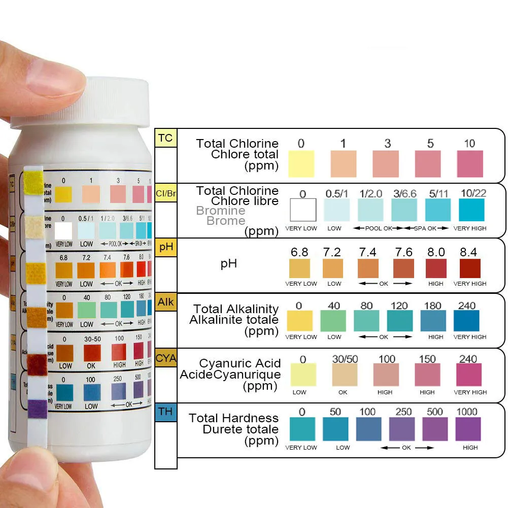 7 In 1 Chlorine Ph Test Strips Spa Swimming Pool Water Test Strip Chlorine Paper Ph Hardness Tester Alkalinity Value Residu B9v2